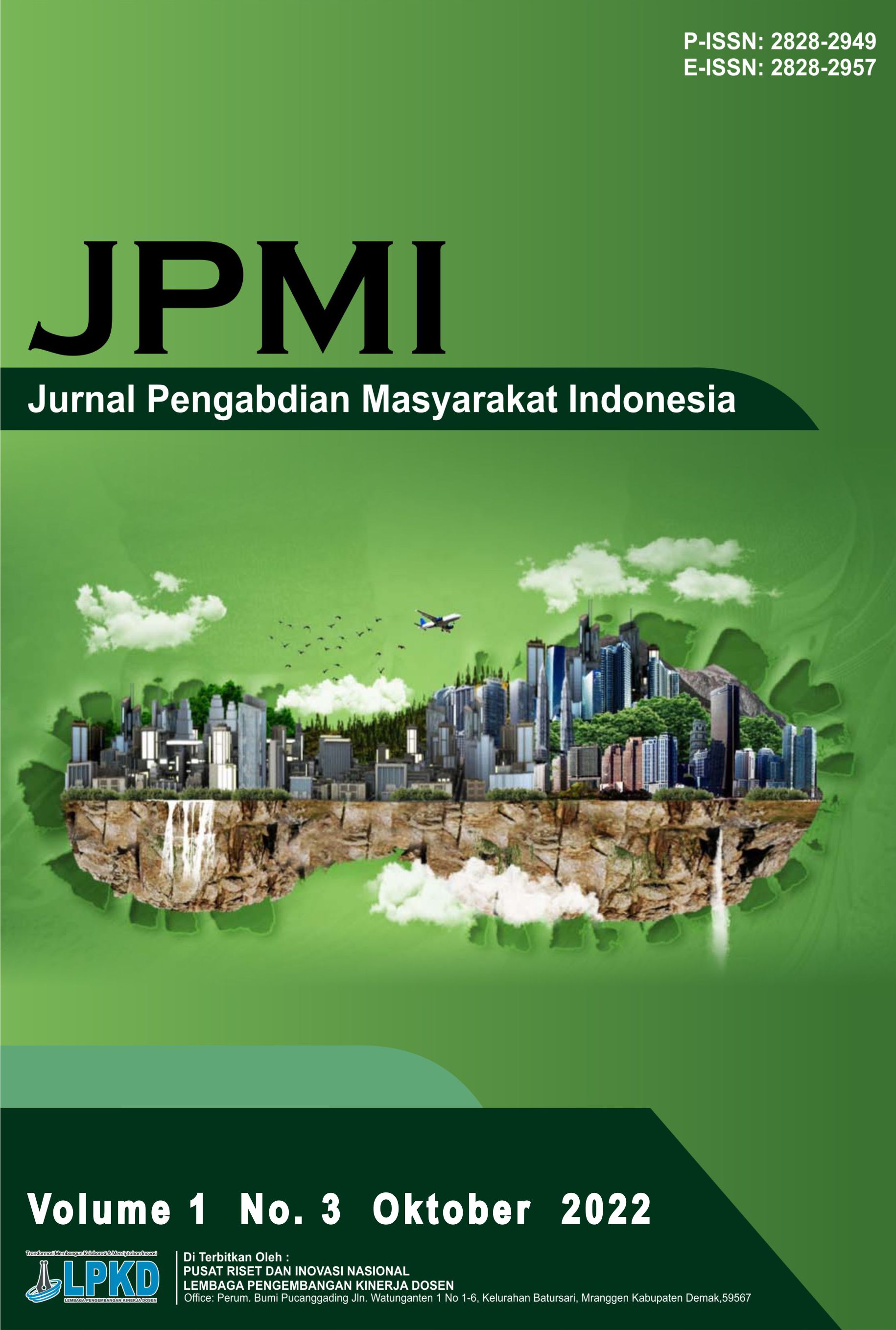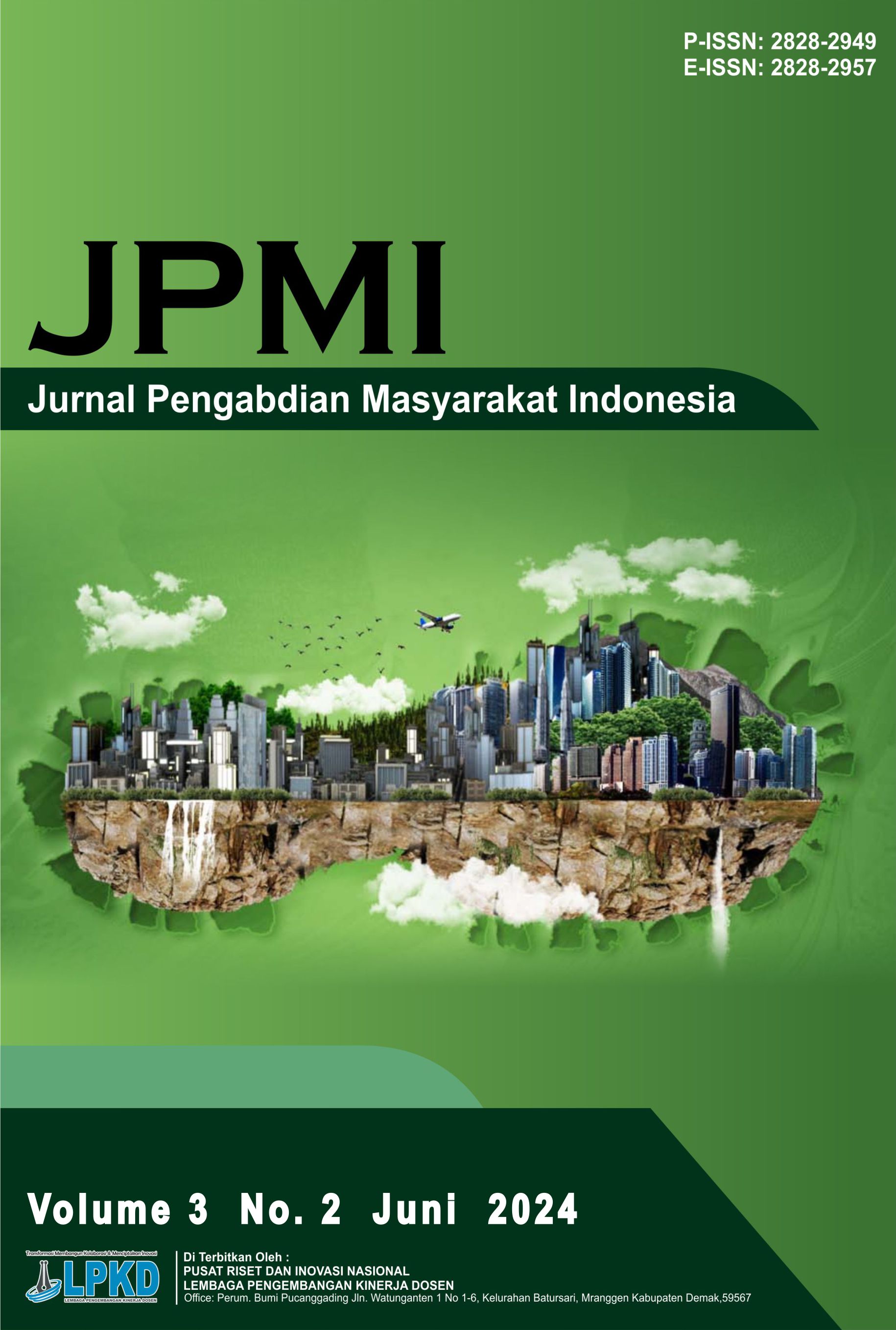 Vol. 4 No. 3 (2025)Jurnal Pengabdian Masyarakat Indonesia (JPMI) adalah jurnal yang menerbitkan artikel-artikel penelitian sebagai hasil pengabdian masyarakat yang telah memiliki nomor E-ISSN : 2828-2957 dan P-ISSN : 2828-2949 Focus dan Scope pada bidang pendidikan, Hukum, Ekonomi, Humaniora, Teknik, Pertanian, Komunikasi, Kesehatan, dan Rekayasa.Jurnal ini terakreditasi SINTA 5 (Surat Keputusan Direktur Jenderal Pendidikan Tinggi, Riset, dan Teknologi Nomor 10/C/C3/DT.05.00/2025 tanggal 21 Maret 2025 tentang Peringkat Akreditasi Jurnal Ilmiah Periode I Tahun 2025) dimulai dari Volume 1 Nomor 2 Tahun 2022 sampai Volume 6 Nomor 1 Tahun 2027. Jurnal Pengabdian kepada Masyarakat indonesia memuat publikasi hasil kegiatan pengabdian masyarakat, model atau konsep dan atau implementasinya dalam rangka peningkatan partisipasi masyarakat dalam pembangunan, pemberdayaan masyarakat atau pelaksanaan pengabdian kepada masyarakat.
