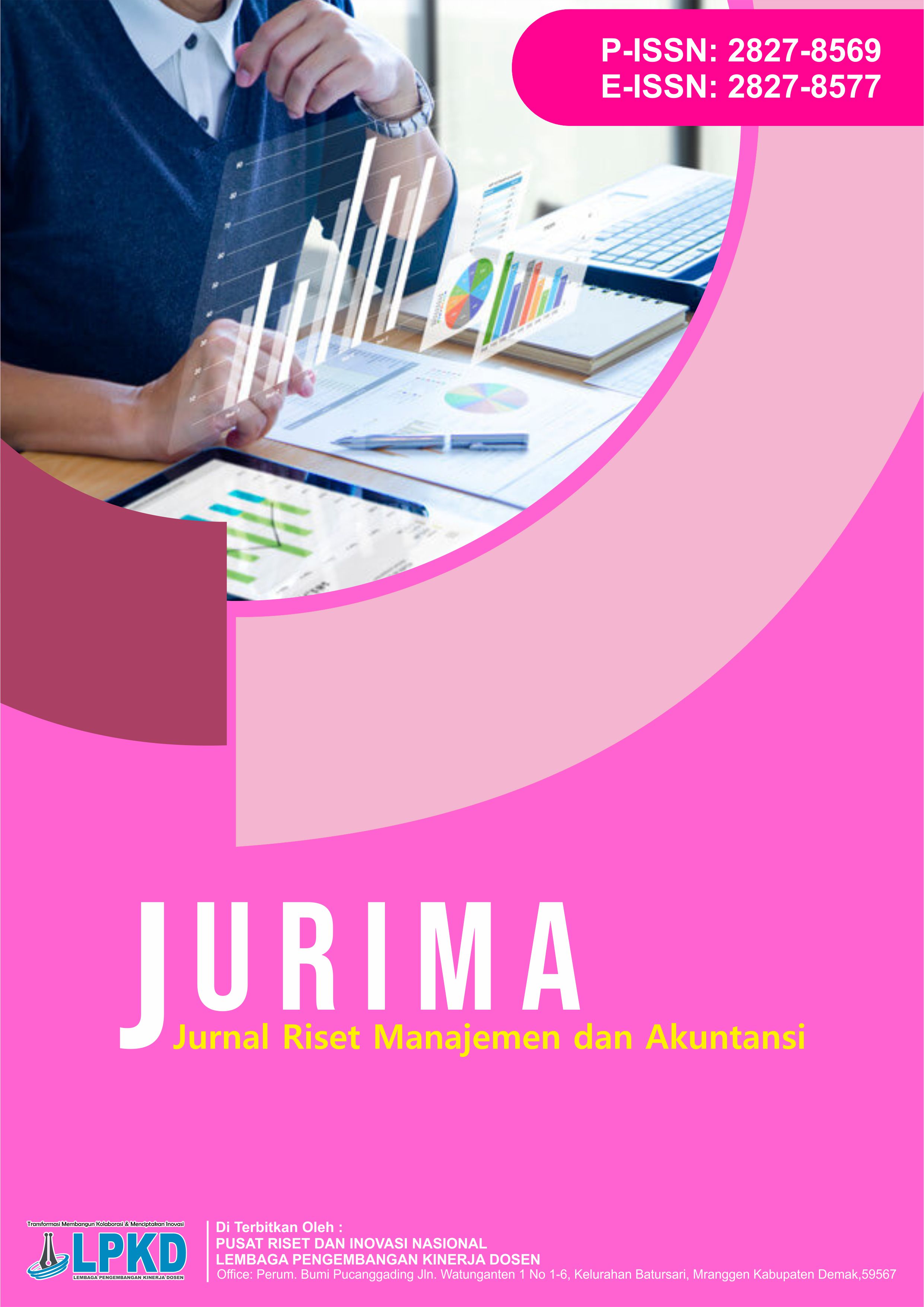 Jurnal Riset Manajemen dan Akuntansi (JURIMA) : ISSN:2827-8569 (cetak), ISSN: 2827-8577 (Online) berfokus pada penerbitan artikel berkualitas tinggi yang didedikasikan untuk semua aspek penelitian, masalah, dan perkembangan terbaru di bidang Ilmu Manajemen.Jurnal ini terakreditasi SINTA 5 (Surat Keputusan Direktur Jenderal Pendidikan Tinggi, Riset, dan Teknologi Nomor 0173/C3/DT.05.00/2025 tanggal 21 Maret 2025 tentang Peringkat Akreditasi Jurnal Ilmiah Periode I Tahun 2025) dimulai dari Volume 2 Nomor 1 Tahun 2022 sampai Volume 6 Nomor 2 Tahun 2026. Topik dalam Jurnal ini berkaitan dengan aspek apapun dari manajemen, namun tidak terbatas pada topik berikut : Manajemen Sumberdaya Manusia , Manajemen Keuangan, Manajemen Pemasaran, Manajemen Sektor Publik, Manajemen Operasional, Manajemen Rantai Pasokan, Corporate Governance, Etika Bisnis, Akuntansi Manajemen dan Pasar Modal dan Investasi.