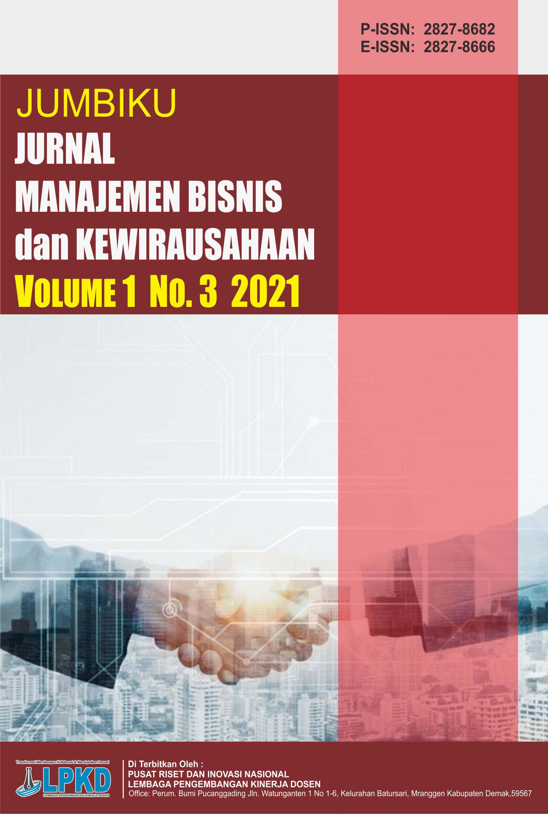 Vol. 1 No. 3 (2021)Jurnal Manajemen, Bisnis dan Kewirausahaan (JUMBIKU) : ISSN: 2827-8682 (cetak), ISSN: 2827-8666 (Online) , Jurnal Manajemen, Bisnis dan Kewirausahaan berfokus pada penerbitan artikel berkualitas tinggi yang didedikasikan untuk semua aspek penelitian, masalah, dan perkembangan terbaru di bidang Ilmu Manajemen. Topik dalam Jurnal Manajemen, Bisnis dan Kewirausahaan berkaitan dengan aspek apapun dari manajemen, namun tidak terbatas pada topik berikut : Manajemen Sumberdaya Manusia , Manajemen Keuangan, Manajemen Pemasaran, Manajemen Sektor Publik, Manajemen Operasional, Manajemen Rantai Pasokan, Corporate Governance, Etika Bisnis, Akuntansi Manajemen dan Pasar Modal dan Investasi. Jurnal ini diterbitkan 3 (tiga) kali dalam satu tahun yaitu EdisiApril, Agustus, dan Desember.
